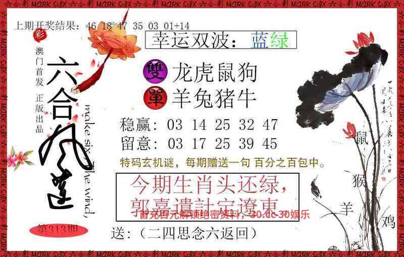 | 312期:【菜肉草肖】开:龙14准 (肉→龙蛇)(草→兔牛) |