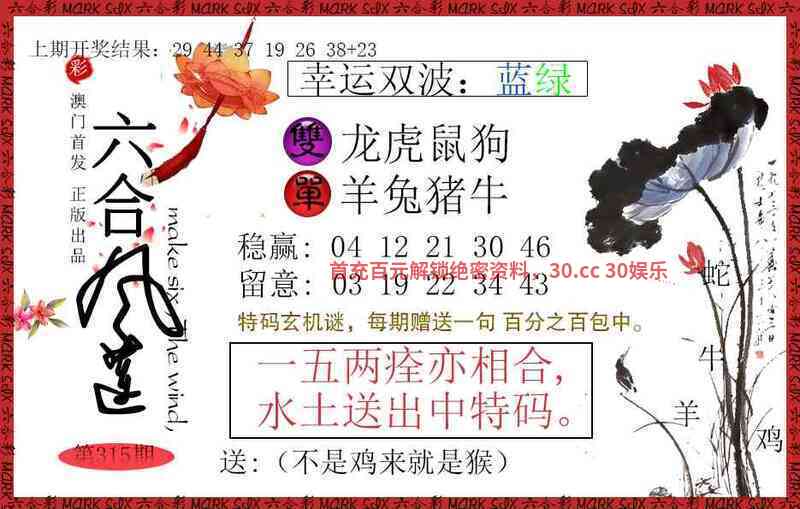 | 315期:【菜肉草肖】开:虎04准 (草→兔羊)(肉→狗虎) |