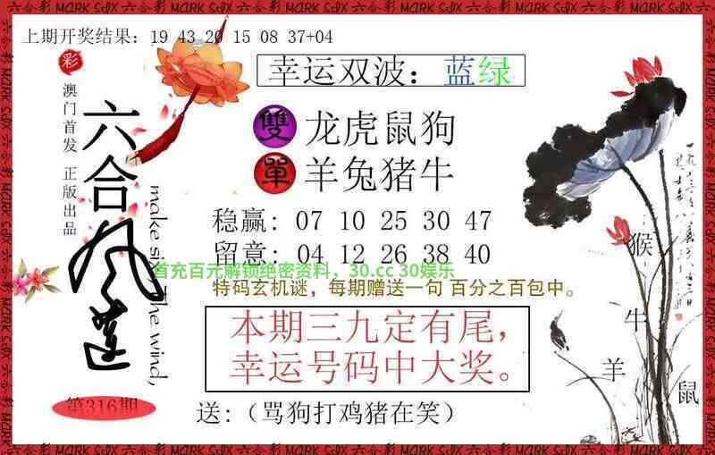 | 316期:【菜肉草肖】开:马24准 (草→羊牛)(菜→鸡猴) |